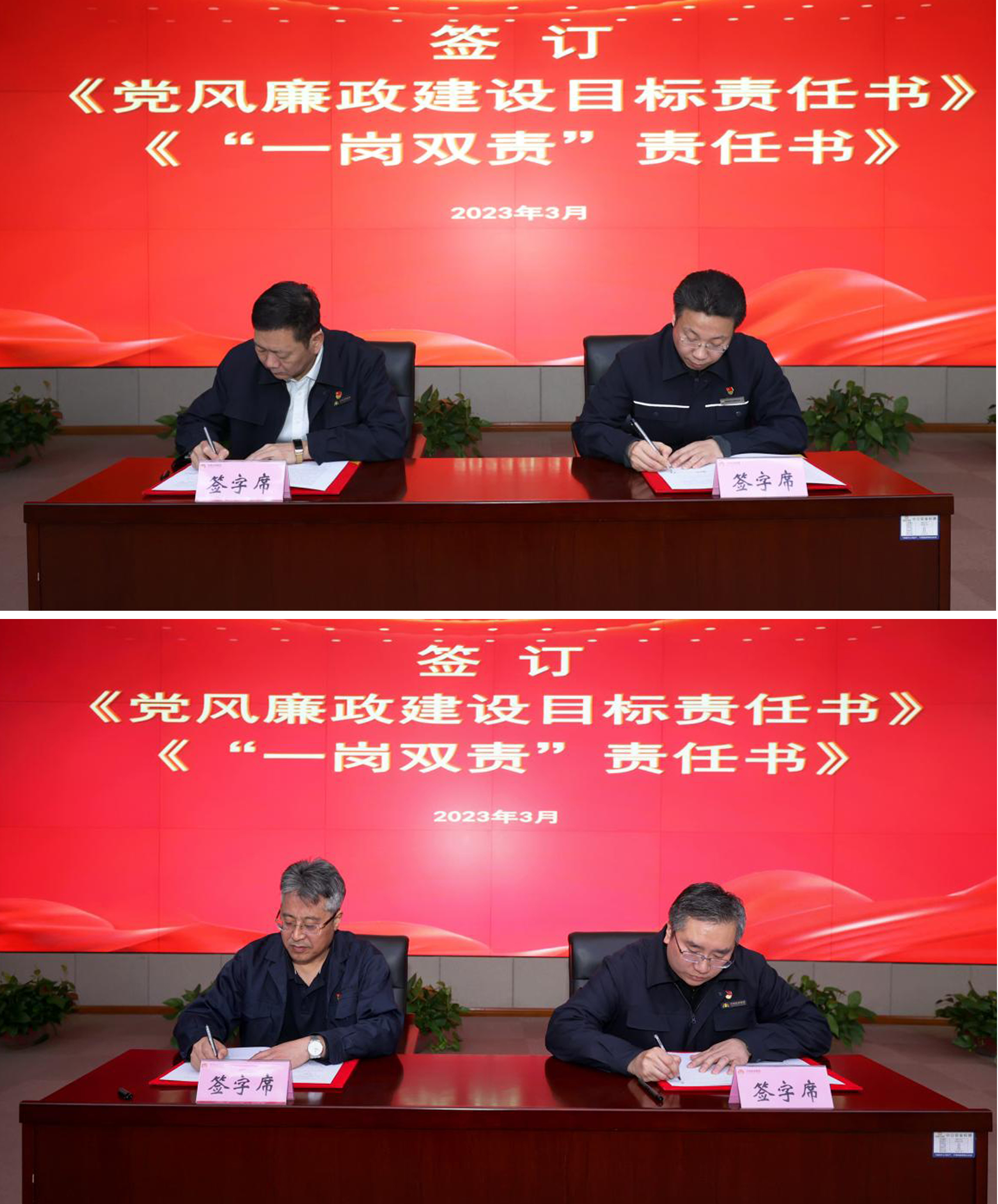 會上觀看了濟南市黨員領導干部違紀違法典型案例警示錄《永遠吹沖鋒號》,簽訂了《黨風廉政建設目標責任書》《“一崗雙責”責任書》。