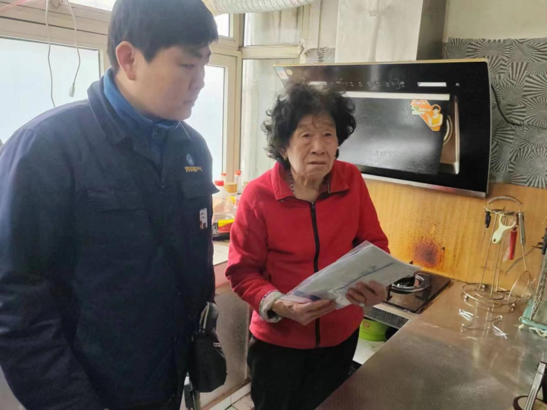 “我這個(gè)月已記不清來(lái)李奶奶家多少次了。”劉忠軍表示,李奶奶是一位八旬老人,老伴因病臥床,兩個(gè)女兒又不在身邊,服務(wù)站將她列入重點(diǎn)幫扶對(duì)象,平時(shí)經(jīng)常會(huì)過(guò)來(lái)看看,順便幫李奶奶檢查燃?xì)庠O(shè)施安全。