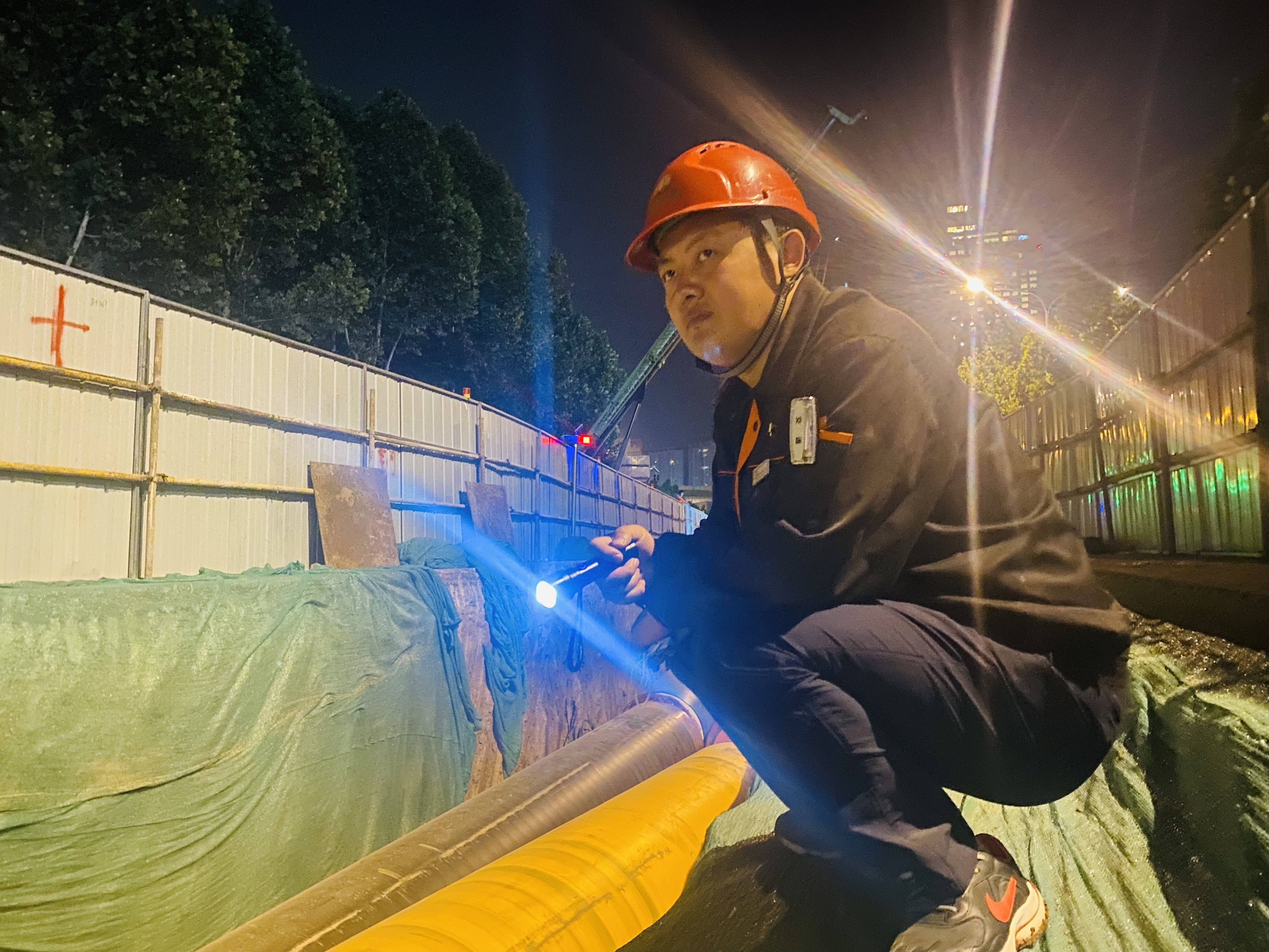 “青年突擊隊”24小時聯(lián)動值班,隨時“應戰(zhàn)”,時刻關注施工情況。于浩志介紹,為保證安全文明施工,確保道路交通安全暢通,施工現(xiàn)場配備低噪音發(fā)電機、打樁機、磁力機、折臂吊、霧炮車、灑水車等一系列設備,并在重要道路和交叉口等處采用夜間半封閉分段施工,白天則通過“墊鋼板+管溝內(nèi)填充墩包”模式恢復交通,最大限度降低施工影響。