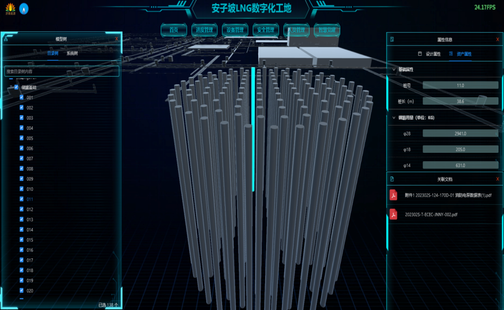 一個(gè)黨員一面旗,一個(gè)先鋒一盞燈,一個(gè)“紅色工地”就是一項(xiàng)優(yōu)質(zhì)工程。安子坡LNG調(diào)峰儲(chǔ)配站項(xiàng)目黨支部推動(dòng)“紅色工地”與“智慧工地”融合發(fā)展,不僅通過“和工程”APP、“安平臺(tái)”確保施工過程監(jiān)管,同時(shí)自主研發(fā)安子坡項(xiàng)目BIM信息化管理系統(tǒng)進(jìn)一步激發(fā)數(shù)字化監(jiān)管潛能,“BIM技術(shù)不僅可以記錄工地的‘身體狀況’和‘工作情況’,還可以借助可視化三維模型對(duì)施工現(xiàn)場(chǎng)進(jìn)行‘所見即所得’的可視化交底,實(shí)現(xiàn)工序工藝‘零返工’和數(shù)據(jù)監(jiān)管‘全覆蓋’。”安子坡LNG儲(chǔ)配站項(xiàng)目負(fù)責(zé)人鮑元飛介紹。