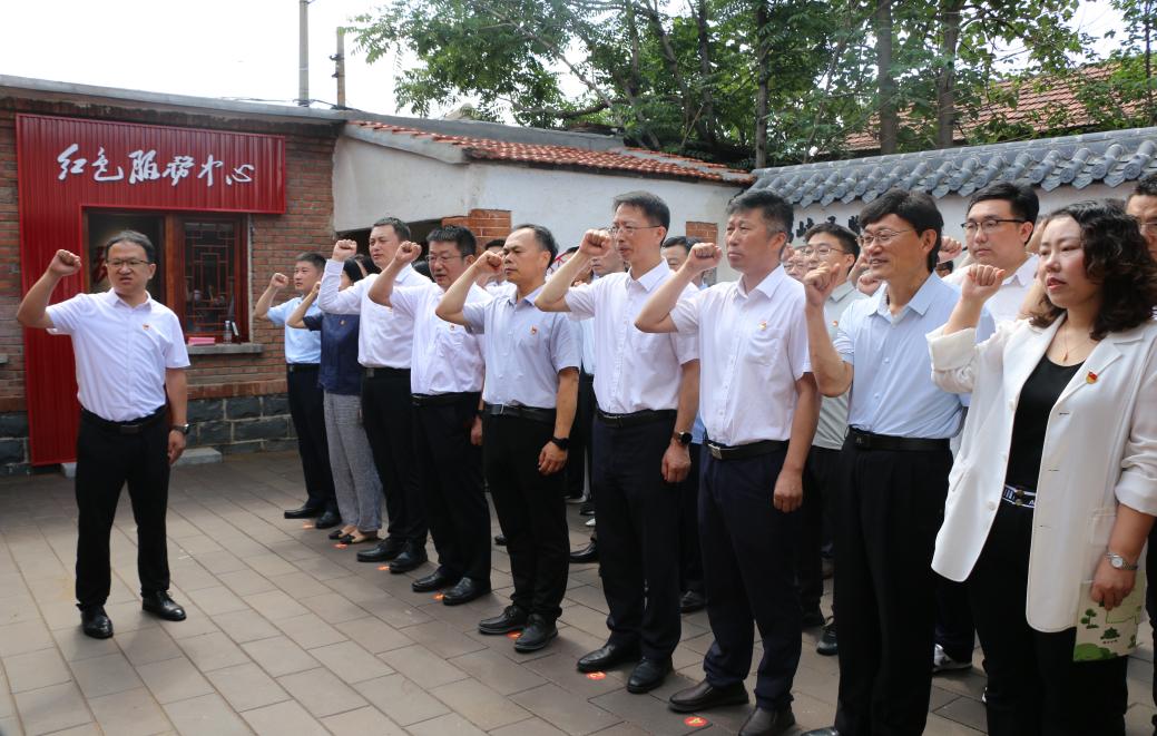 相公莊紅色驛站里,一面鮮紅的黨旗赫然在目?,F(xiàn)場工作人員以劉鳴岐烈士為重點(diǎn),以相公莊黨史館、劉鳴岐展覽館、紅爐講堂等區(qū)域?yàn)橹骶€,為大家重現(xiàn)了革命戰(zhàn)爭時期發(fā)生在相公莊的紅色故事、烈士事跡。隨后,全體黨員面向黨旗,高舉右拳,共同重溫入黨誓詞。儀式莊重,誓言鏗鏘,充分展現(xiàn)了在場全體黨員對黨忠誠的初心以及擔(dān)當(dāng)作為的決心。