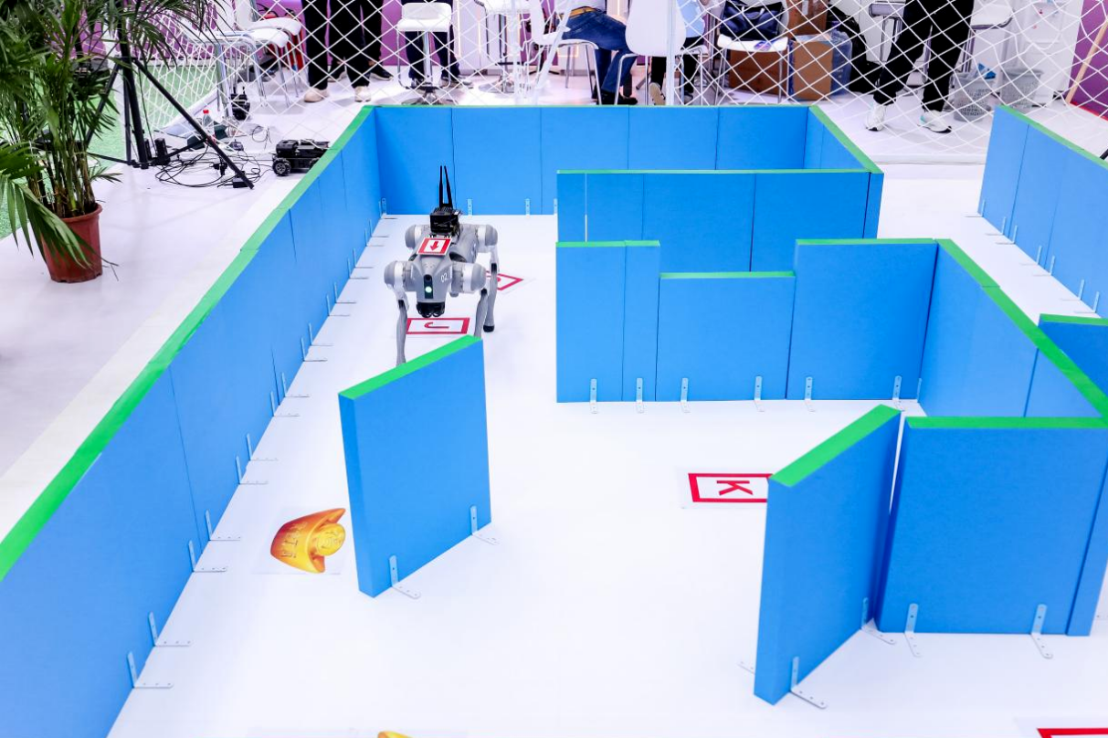 比如在空地協(xié)同應用場景,無人機可以用上帝視角,指揮機器狗穿越復雜地形,并躲避狹窄區(qū)域,無人機實時追蹤定位機器狗的位置,并發(fā)出下一步指令。若發(fā)現(xiàn)地形改變,將重新構(gòu)圖并生成路線,在無人機的指揮下機器狗成功完成任務(wù)。