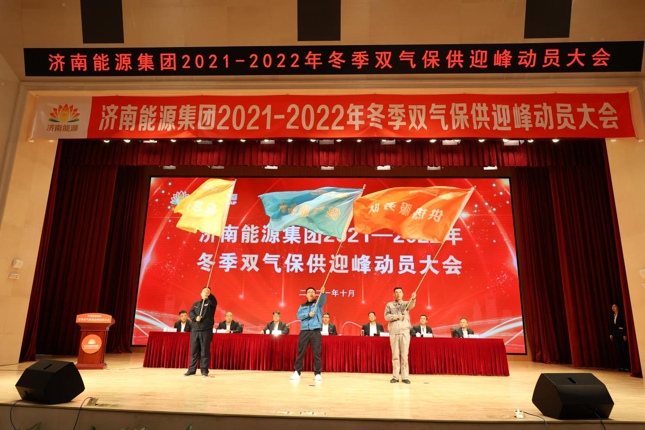會(huì)上,陳勇、潘世英為一線供熱服務(wù)隊(duì)、供氣服務(wù)隊(duì)、應(yīng)急搶修隊(duì)代表授旗。與會(huì)領(lǐng)導(dǎo)為代表山東出征全運(yùn)會(huì)獲得佳績(jī)的男足代表隊(duì)頒發(fā)嘉獎(jiǎng)狀,集團(tuán)號(hào)召全體干部職工向他們學(xué)習(xí),同舟共濟(jì)、勠力同心,激發(fā)干事創(chuàng)業(yè)精氣神,投身民生服務(wù)主戰(zhàn)場(chǎng)。濟(jì)南熱力、山東濟(jì)華、濟(jì)南能源工程集團(tuán)負(fù)責(zé)人依次做表態(tài)發(fā)言,表示將立足3.14億平方米供熱主戰(zhàn)場(chǎng),充分發(fā)揚(yáng)“能源鐵軍”精神,敢打必勝、決戰(zhàn)決勝,堅(jiān)決打贏冬季保供“濟(jì)南戰(zhàn)役”,切實(shí)保障171萬(wàn)戶熱力用戶、210萬(wàn)戶燃?xì)庥脩舳菊S脽?、用氣?/p>