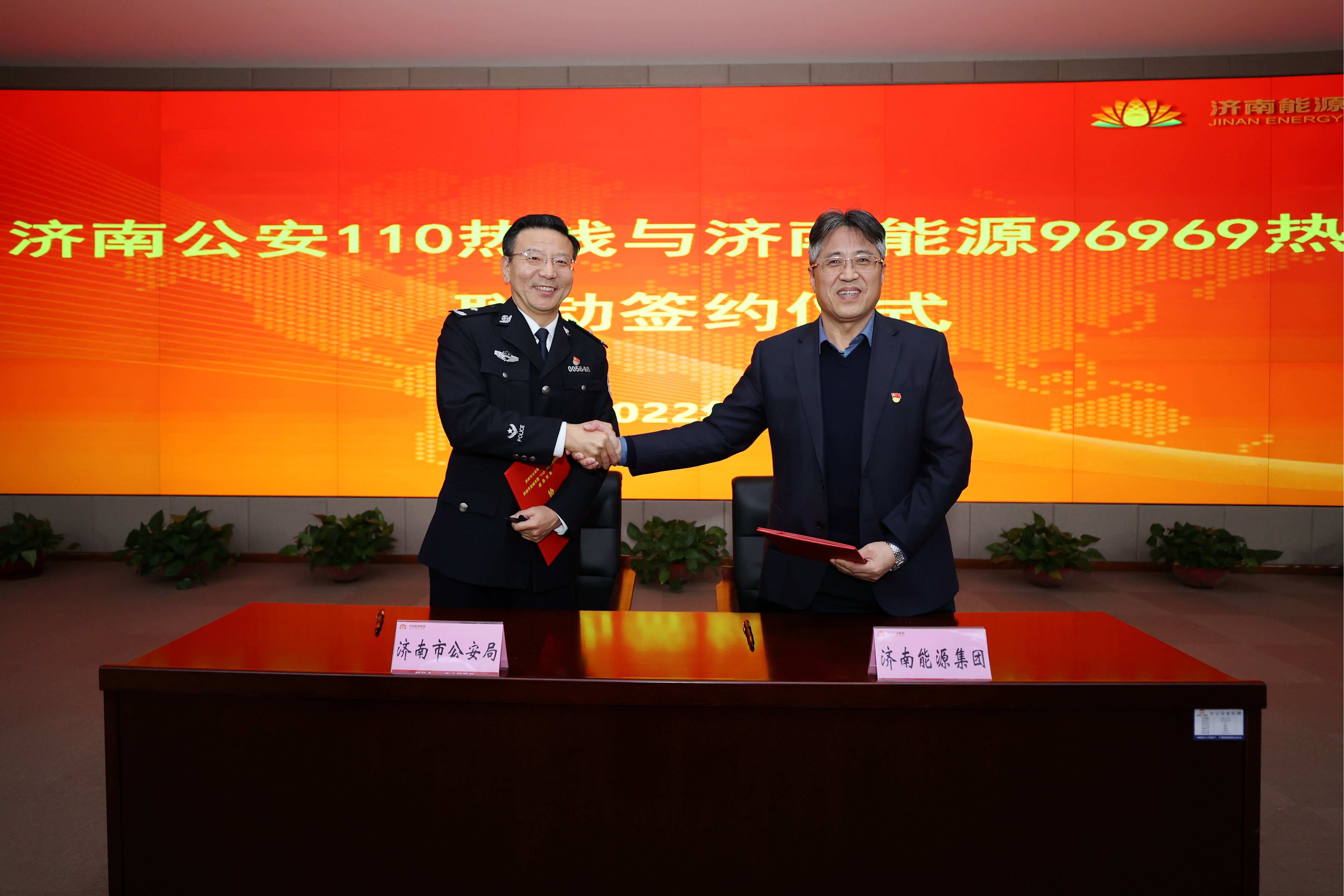 濟南能源集團黨委副書記、總經(jīng)理劉衍波與濟南市公安局情指勤合成作戰(zhàn)中心主任林景代表雙方簽訂《濟南公安110熱線、濟南能源集團96969熱線聯(lián)動合作協(xié)議》。