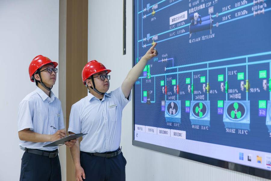 “冬天我們輸送到換熱站的供水溫度大約在90攝氏度左右,根據(jù)具體氣溫往下或往上調(diào)整。夏季輸送7攝氏度左右的冷凍水作為冷媒(到換冷站),通過冷的交換原理置換出7-9攝氏度左右的冷凍水進到用戶的末端風(fēng)盤系統(tǒng),滿足用戶夏季制冷的需求。”崔玥介紹,水是一種非常穩(wěn)定和常用的供熱供冷媒介,更適合大規(guī)模的區(qū)域集中供熱供冷使用。
