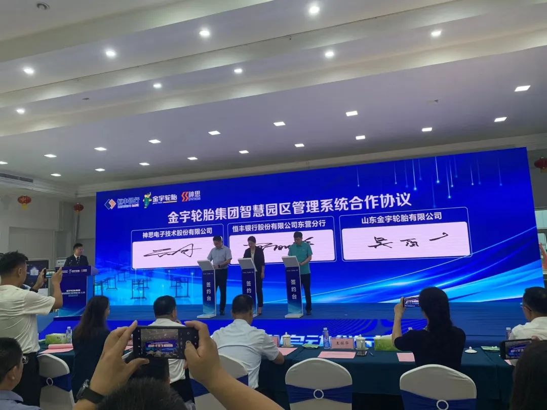 7月12日,金宇輪胎集團(tuán)智慧園區(qū)管理系統(tǒng)上線啟動(dòng)儀式在東營(yíng)市成功舉辦,恒豐銀行東營(yíng)分行及神思電子作為系統(tǒng)建設(shè)方參加儀式。東營(yíng)市工業(yè)和信息化局黨組書記、局長(zhǎng)杜振波,恒豐銀行濟(jì)南分行黨委委員、行長(zhǎng)助理潘亦菲,廣饒縣委常委、常務(wù)副縣長(zhǎng)李麥林,恒豐銀行東營(yíng)分行黨總支書記、行長(zhǎng)常勇,金宇輪胎集團(tuán)黨支部書記、董事延惠峰,神思電子智慧幼兒園事業(yè)部總經(jīng)理谷萬(wàn)田等參加了啟動(dòng)儀式?;顒?dòng)中,恒豐銀行東營(yíng)分行、神思電子、金宇輪胎三方代表簽署合作協(xié)議。