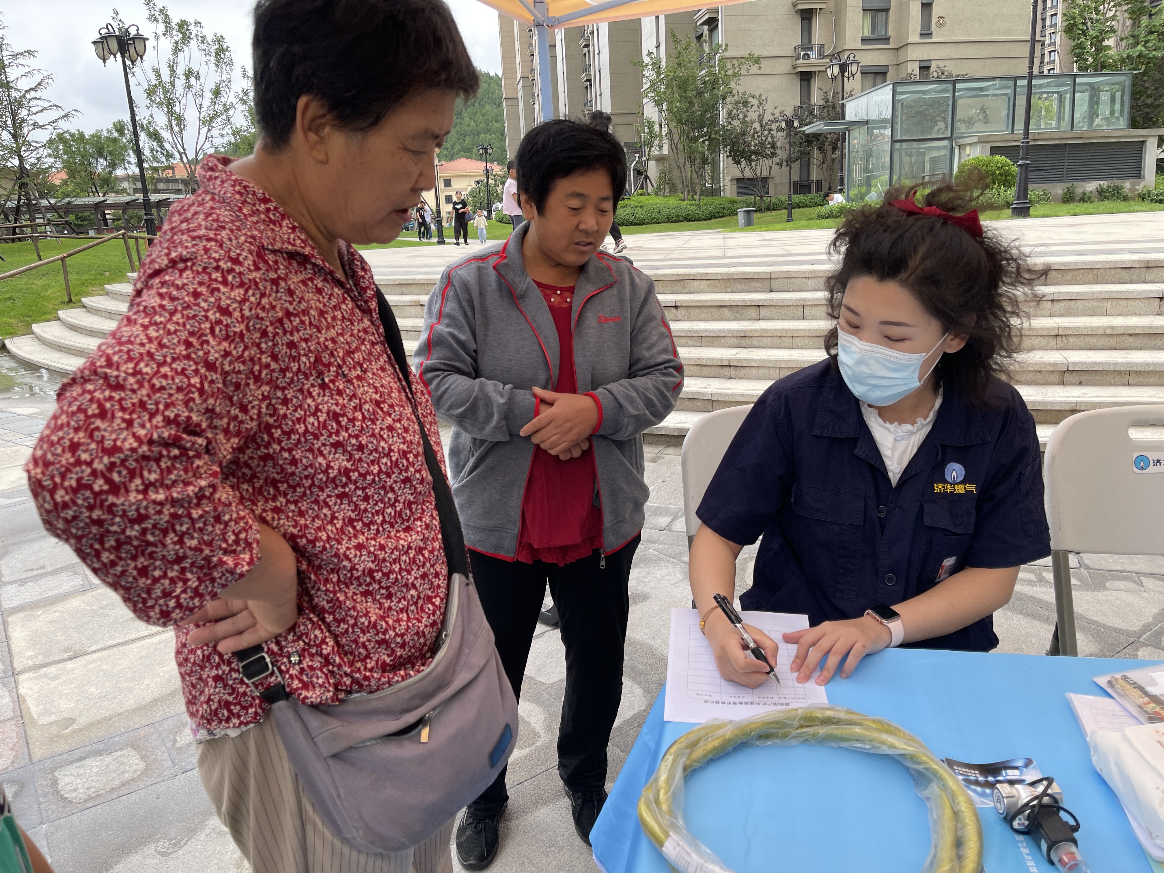 “他們剛來小區(qū)的時候,現(xiàn)場非常熱鬧,我湊過去一問,才知道是燃氣公司來免費換軟管的。”該用戶興致勃勃地說起“紅心藍焰”黨員先鋒服務(wù)隊第一次進社區(qū)時的場景:“當時現(xiàn)場咨詢的用戶非常多,七嘴八舌的環(huán)境很容易讓人產(chǎn)生煩躁的情緒,但他們態(tài)度特別好,非常有耐心,對每個人都面帶笑容。知道我家軟管快到期后,立刻登記了我家的信息,并安排安檢人員跟著我去家里檢查。”