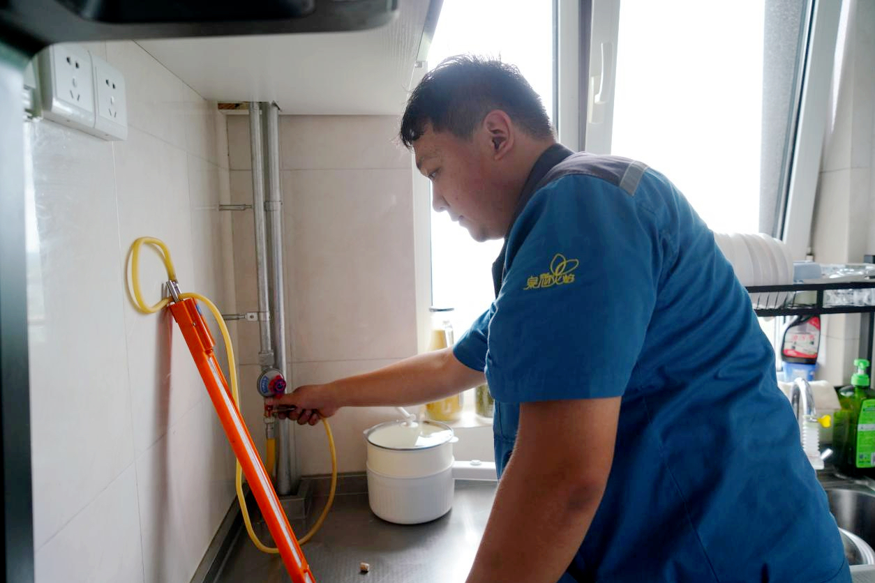 炎夏,陣雨前的濟南悶熱潮濕。濟南能源集團供暖管家趙煒杰身穿防靜電服工裝,在冷水溝小區(qū)一戶居民家中進行燃氣安全檢查,額頭上,不時有幾滴汗水滑落。