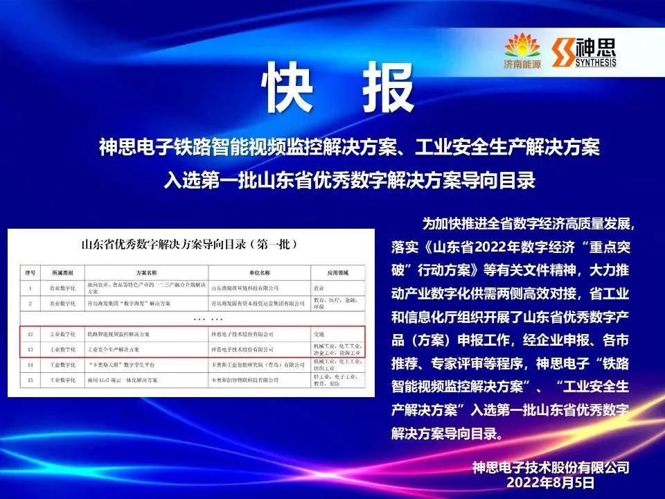 【能源快報(bào)】神思電子入選山東省優(yōu)秀數(shù)字解決方案導(dǎo)向目錄(第一批)