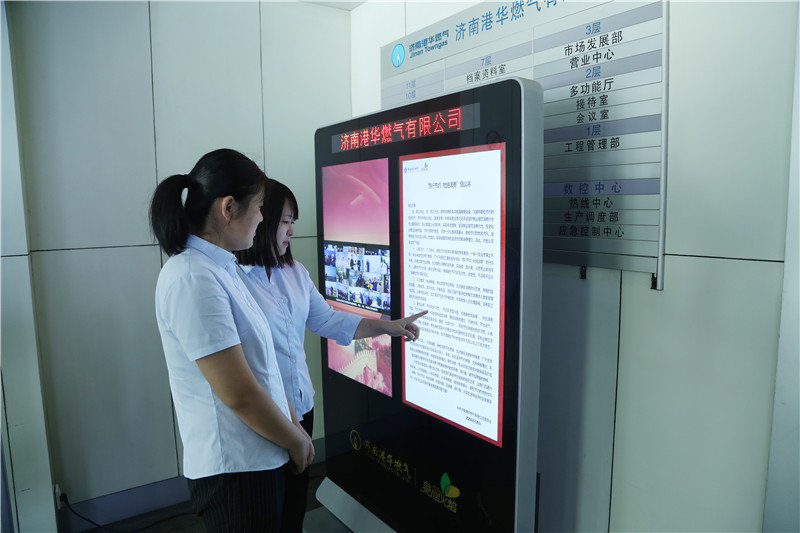 在濟(jì)南港華燃?xì)?,人們一進(jìn)門就能看到電子屏幕上發(fā)布的“厲行節(jié)約 杜絕浪費(fèi)”倡議書,號(hào)召全體職工爭(zhēng)做良好美德風(fēng)尚的參與者、踐行者、倡導(dǎo)者。