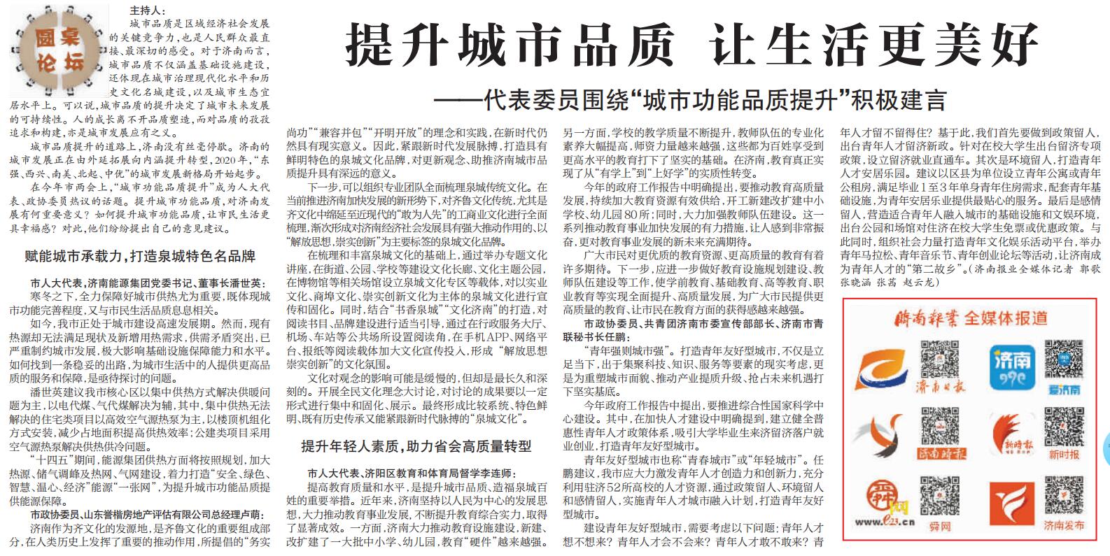 【濟(jì)南報(bào)業(yè)】提升城市品質(zhì) 讓生活更美好——代表委員圍繞“城市功能品質(zhì)提升”積極建言