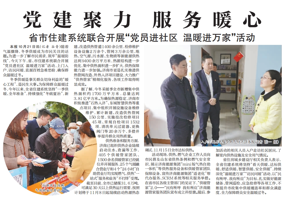 【濟(jì)南日報】黨建聚力 服務(wù)暖心 省市住建系統(tǒng)聯(lián)合開展“黨員進(jìn)社區(qū) 溫暖進(jìn)萬家”活動