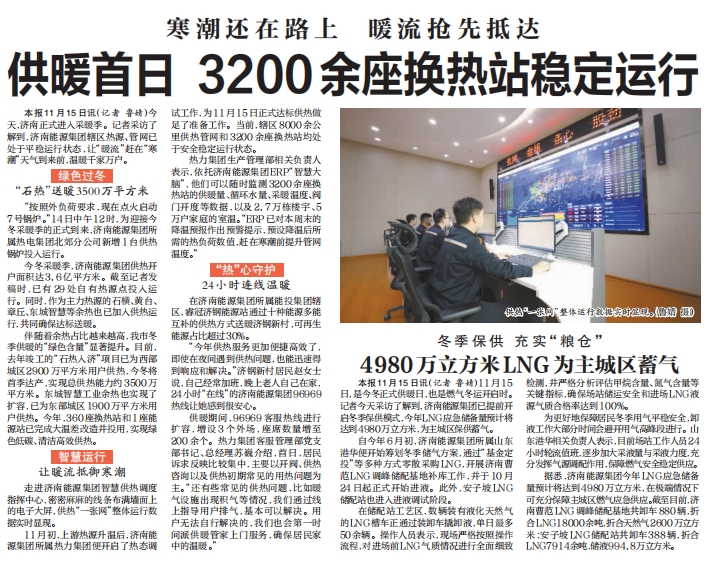 【濟(jì)南日報(bào)】寒潮還在路上 暖流搶先抵達(dá) 供暖首日 3200余座換熱站穩(wěn)定運(yùn)行