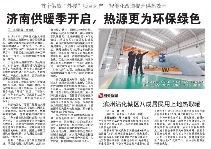 【濟(jì)南日?qǐng)?bào)】首個(gè)供熱“外援”項(xiàng)目達(dá)產(chǎn) 智能化改造提升供熱效率 濟(jì)南供暖季開(kāi)啟,熱源更為環(huán)保綠色