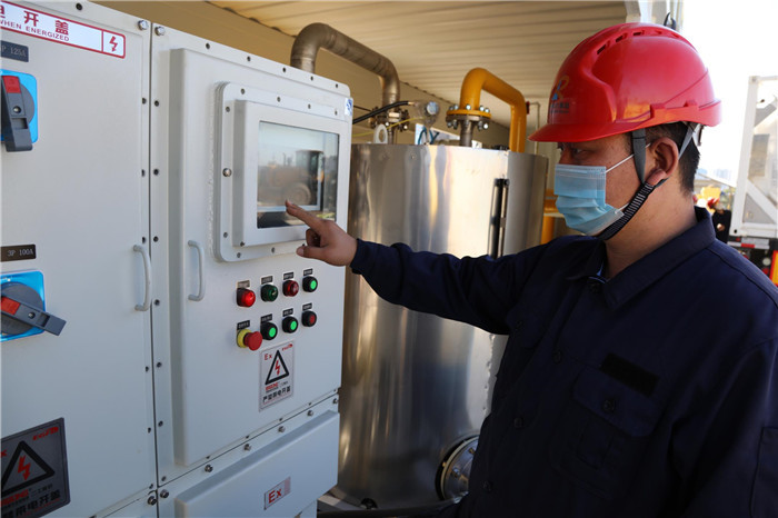 10月23日,華山熱源項目進入緊張的點火準備工作。集控室里,工作人員緊盯著屏幕上的各項參數(shù),不時的用對講機與現(xiàn)場的同事溝通著。集控室外,調壓站已經準備就緒,工作人員已經將燃氣罐連接到管道上,只等“送氣”命令。“華山熱源項目目前建設有三臺70MW 燃氣鍋爐,燃氣管道暫時還未就緒,為了不影響點火煮爐,我們提前一天就準備一罐20噸的天然氣。”現(xiàn)場工作人員介紹,為了安全,現(xiàn)場手機必須關機,通過對講機與集控室聯(lián)系。