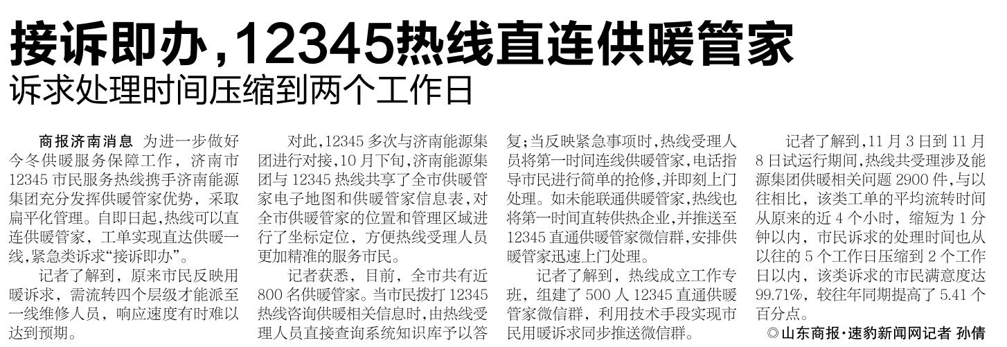 【山東商報·速豹新聞】接訴即辦,12345熱線直連供暖管家