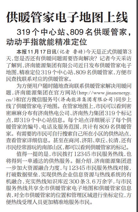 【濟(jì)南日?qǐng)?bào)】供暖管家電子地圖上線 319個(gè)中心站、809名供暖管家,動(dòng)動(dòng)手指就能精準(zhǔn)定位