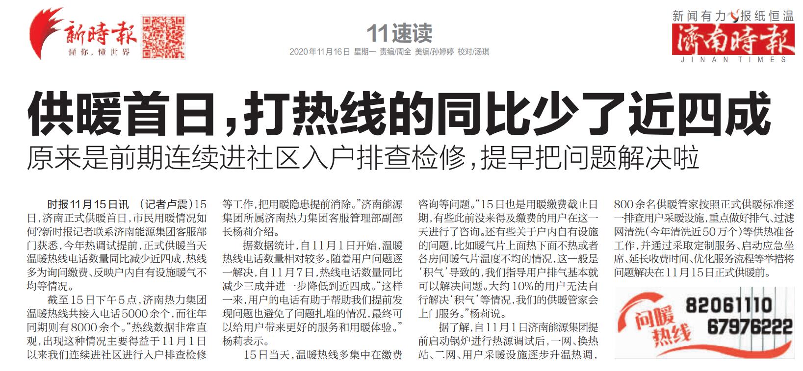 【濟(jì)南時(shí)報(bào) · 新時(shí)報(bào)】供暖首日,打熱線的同比少了近四成
