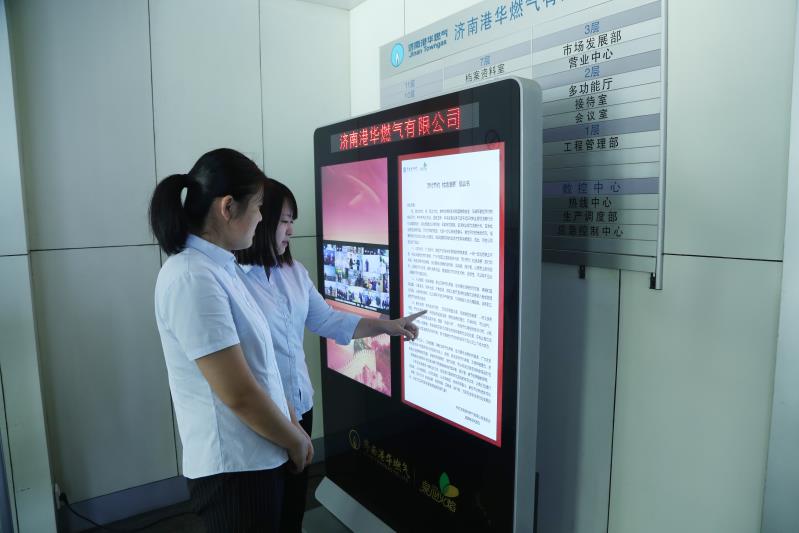 在濟(jì)南港華燃?xì)猓藗円贿M(jìn)門就能看到電子屏幕上發(fā)布的“厲行節(jié)約 杜絕浪費(fèi)”倡議書,號召全體職工爭做良好美德風(fēng)尚的參與者、踐行者、倡導(dǎo)者。